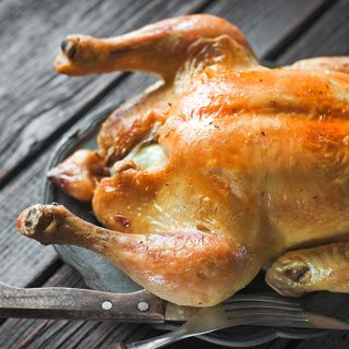 Das Brathuhn wird mit einer leckeren Marinade bestrichen und im Ofen gegart, bis es außen schön knusprig und innen trotzdem noch saftig ist.